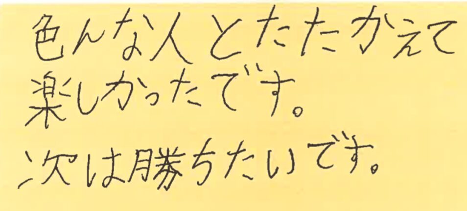 さて、今回は、2月8日から11日にかけて開催した大会の写真と優勝された方のお名前、それと、その日に初めて参加してくださった方よりいただいた感想をご紹介させていただきます!