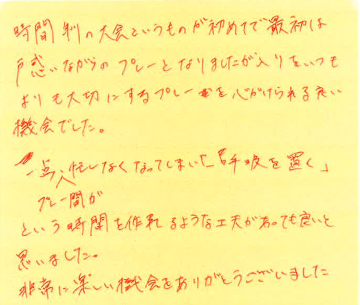 初めて参加された方が、大会を通して何を感じたのか?特に初めて参加しようとしている方の参考にしていただけたらと思います。