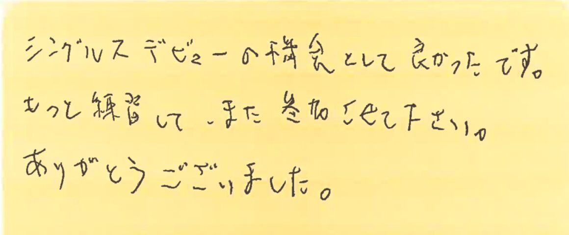 2月9、23日の調布プチシングルス大会に初めて参加してくださった方の感想です!
