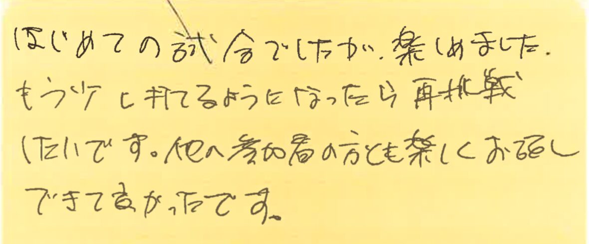 初めて参加された方が、大会を通して何を感じたのか?特に初めて参加しようとしている方の参考にしていただけたらと思います。