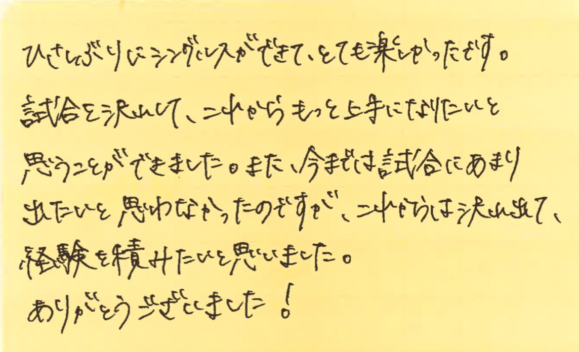 また、皆さんとコートでお会いできる日を楽しみにしております!!