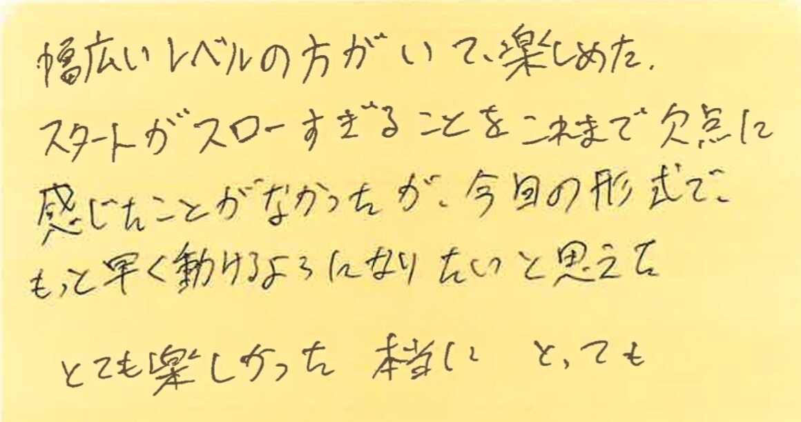 そして、この日、初めて参加してくださった方よりいただいた感想も紹介させていただきます!