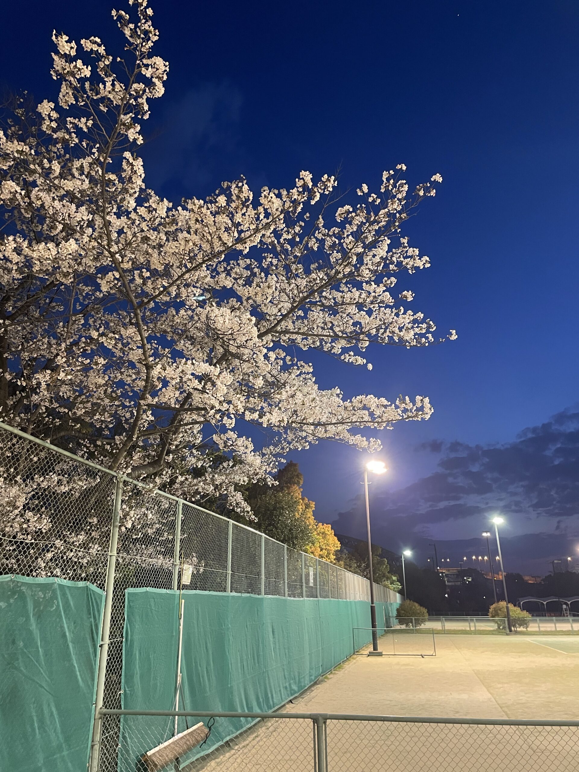 コート脇の桜がテニスコートの照明に照らされて、とても綺麗でした!