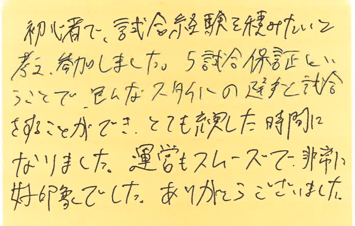 さて、今回は、大型連休の後半、5月3日から7日にかけて開催した大会の写真と優勝された方のお名前、それと、その日に初めて参加してくださった方よりいただいた感想をご紹介させていただきます!