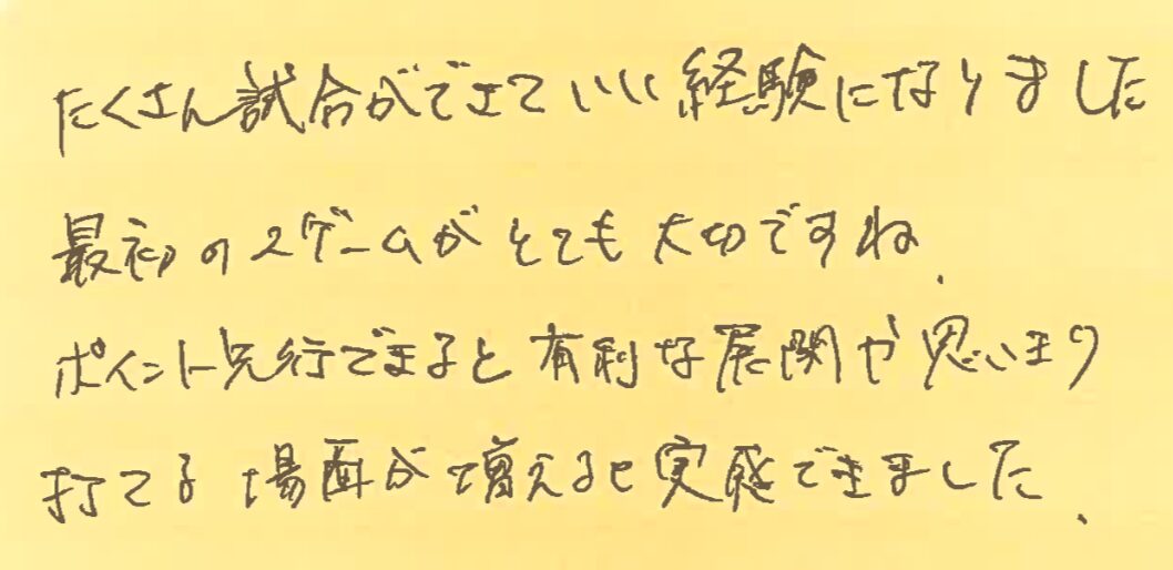 予選で当たった時には3-1で田口選手が勝ったのですが、決勝ではしっかり対策をたて、8-1で勝ち切りました!