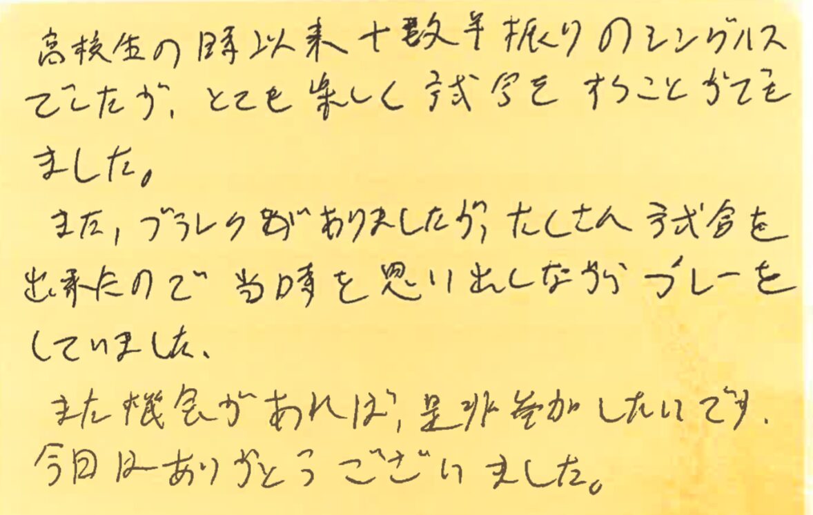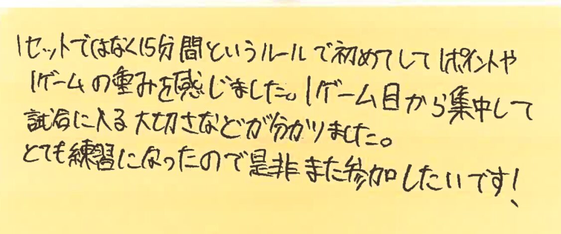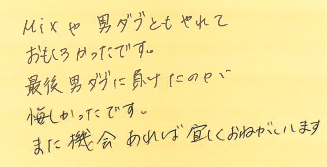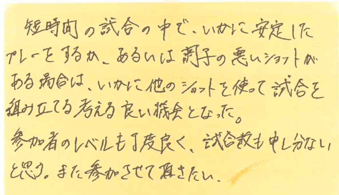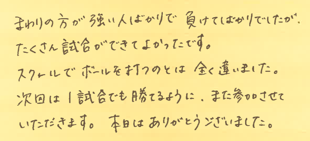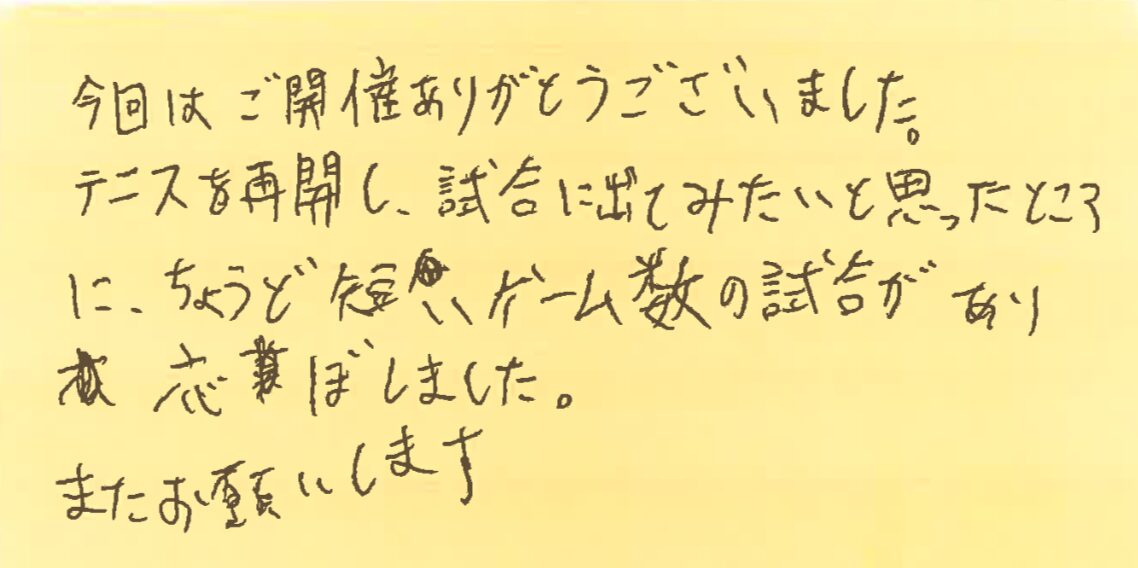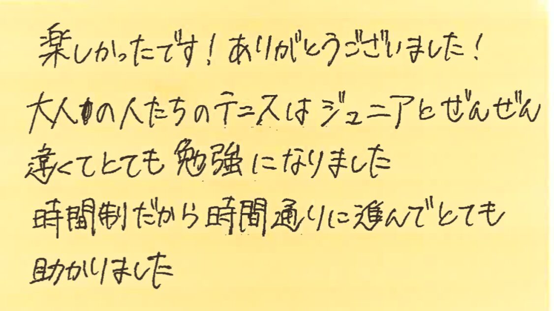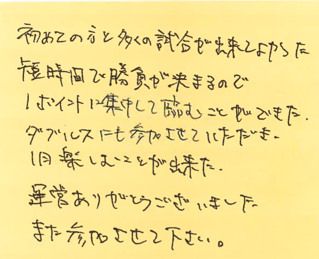 また、皆さんとコートでお会いできる日を楽しみにしております!!