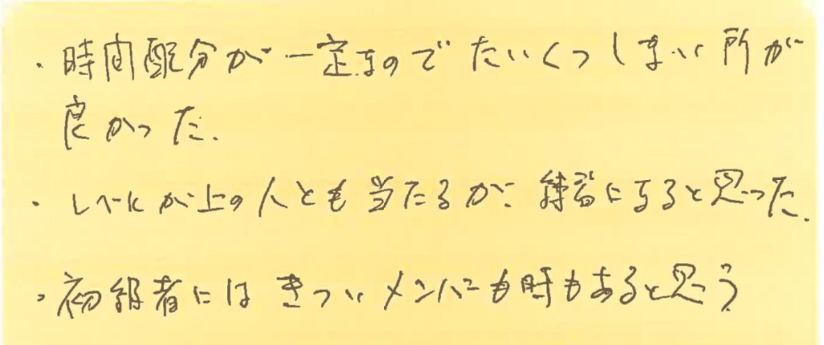 そして、この日、初めて参加してくださった方よりいただいた感想も紹介させていただきます!