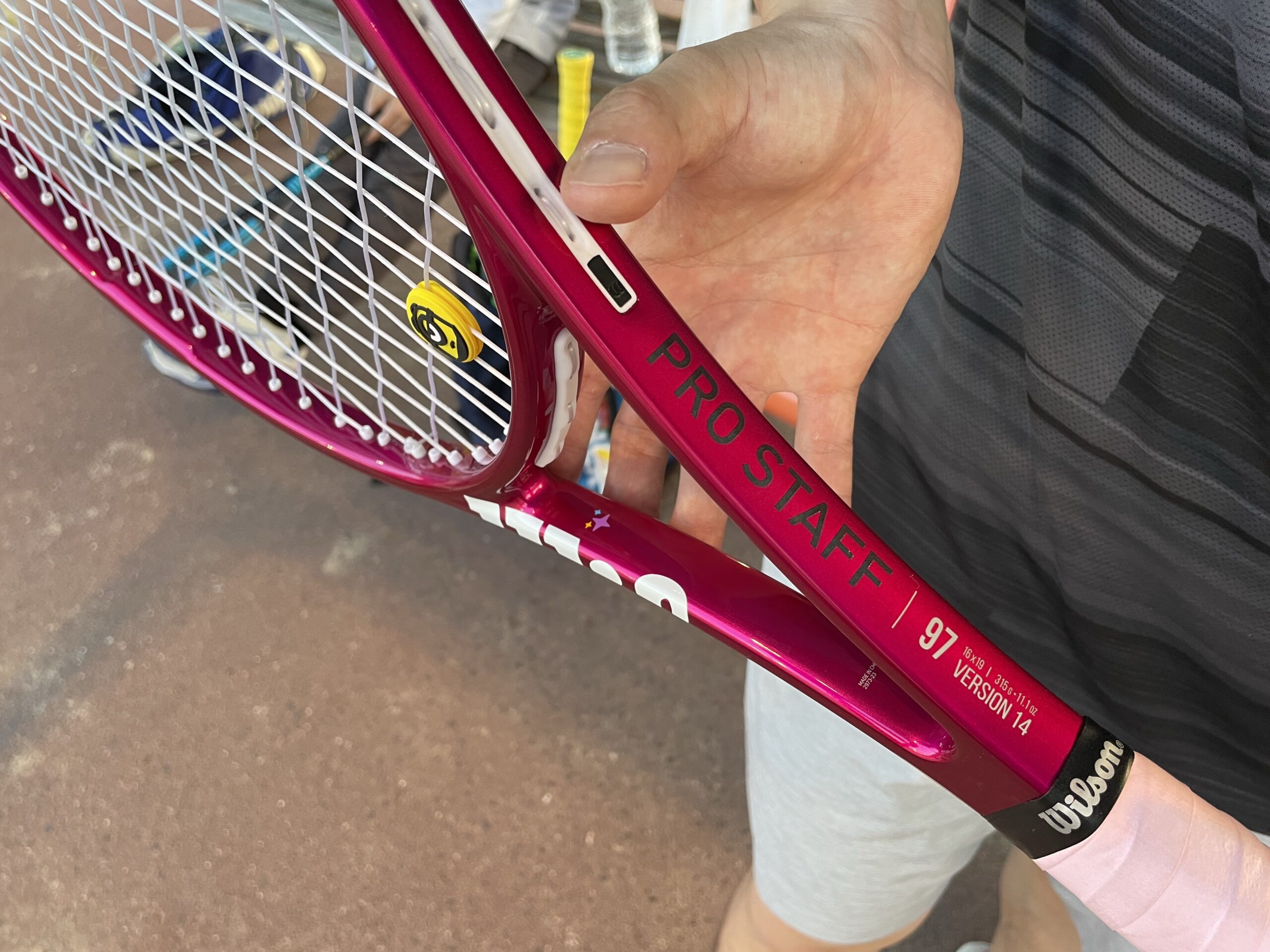 この日、参加されていた方が素敵な色のラケットを持っていたので、見せていただいたらこれがなんと、Pro Staff !