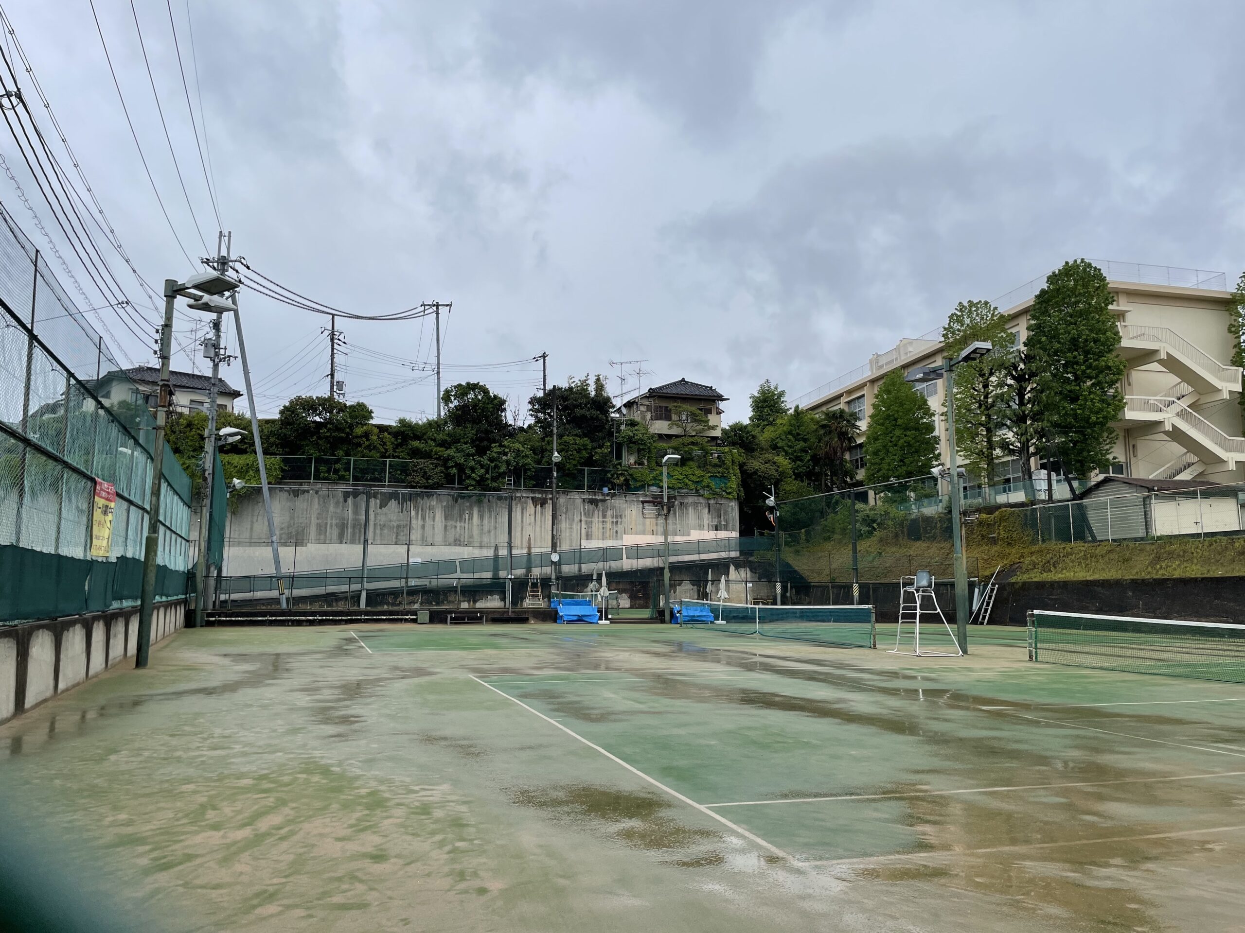 でも、その後、雨が止んでいたのと、必死にコート整備・・・布で水分を取りまくり・・・したおかげで、2時からプレーできることに!!!