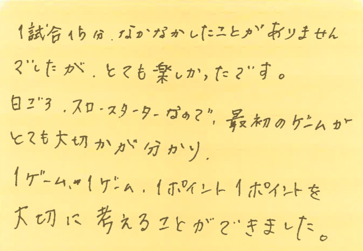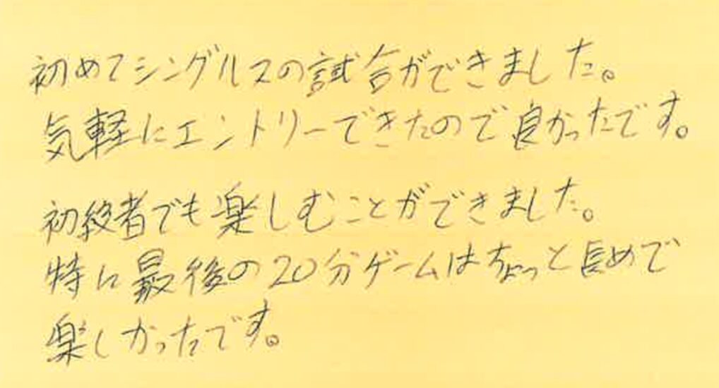 3月20、22日の横浜プチシングルス大会に初めて参加してくださった方の感想です!
