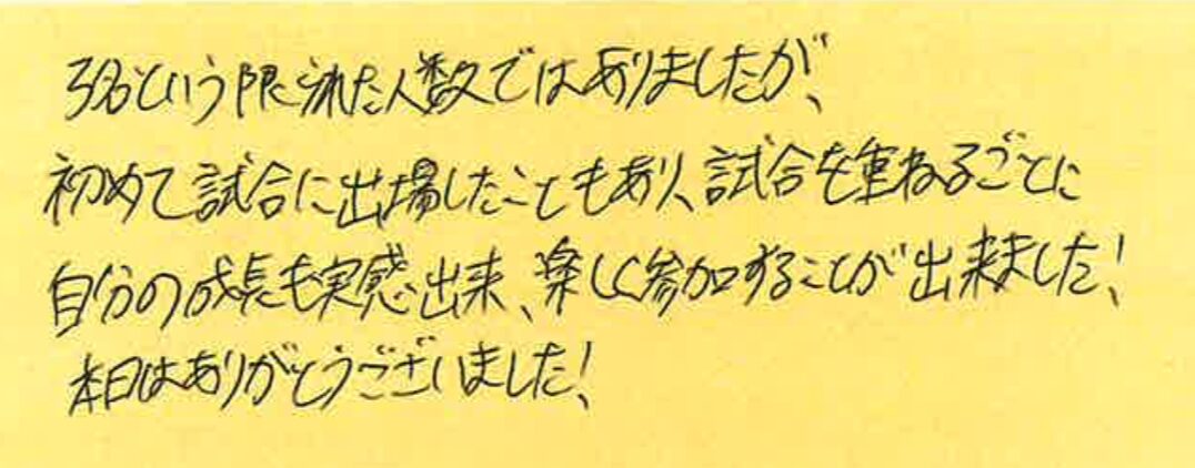 初めて参加された方が、大会を通して何を感じたのか?特に初めて参加しようとしている方の参考にしていただけたらと思います。