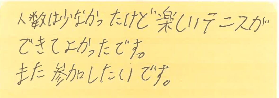 4月5、12、19、26日の横浜プチシングルス大会に初めて参加してくださった方の感想です!