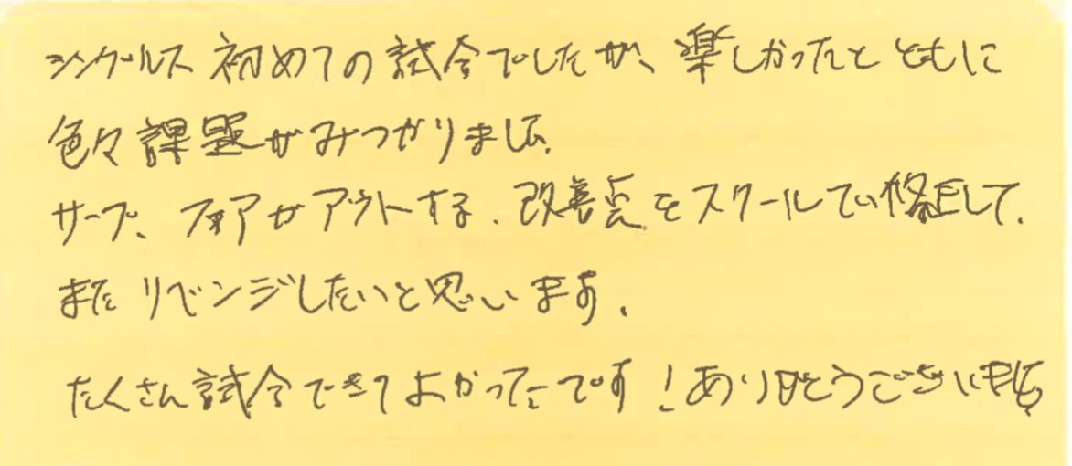 今回は、4月5、12、19、26日の横浜プチシングルス大会に初めて参加された方の感想をシェアさせていただきます!