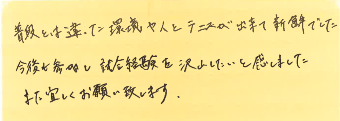 また、皆さんとコートでお会いできる日を楽しみにしております!!