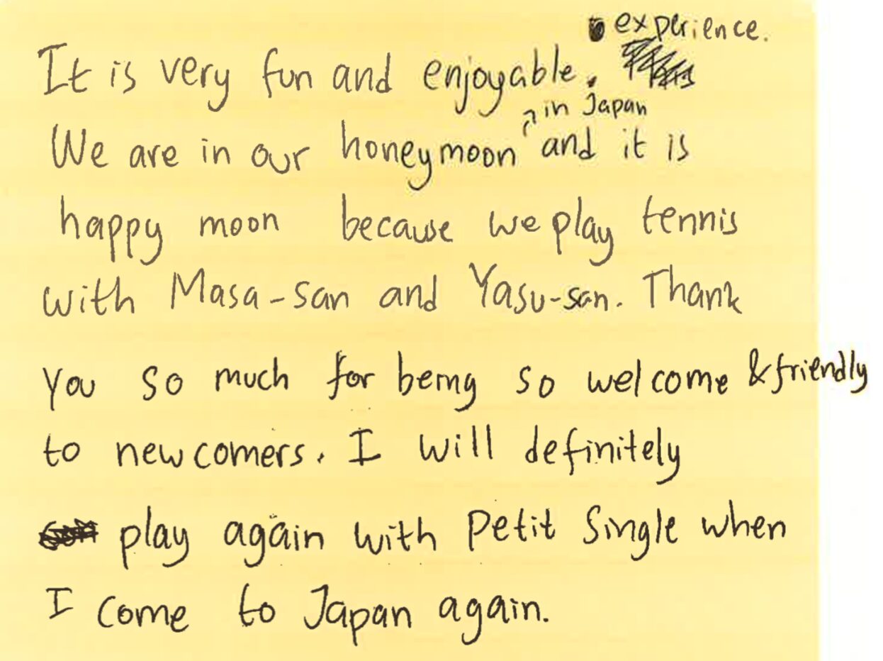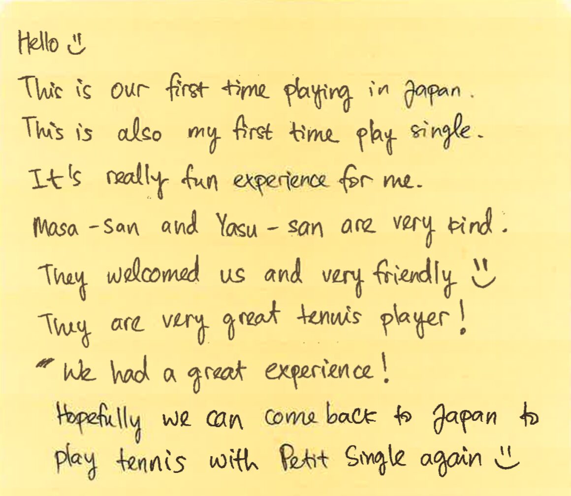 ・・・というわけで、また日本に来られた際には、プチシングルス大会にもお越しください!