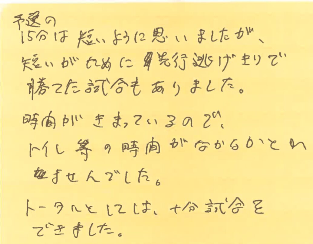 平日ということもあり、少人数での開催となりましたが、皆さんしっかりと試合経験を積んでいただき、お楽しみいただけました!