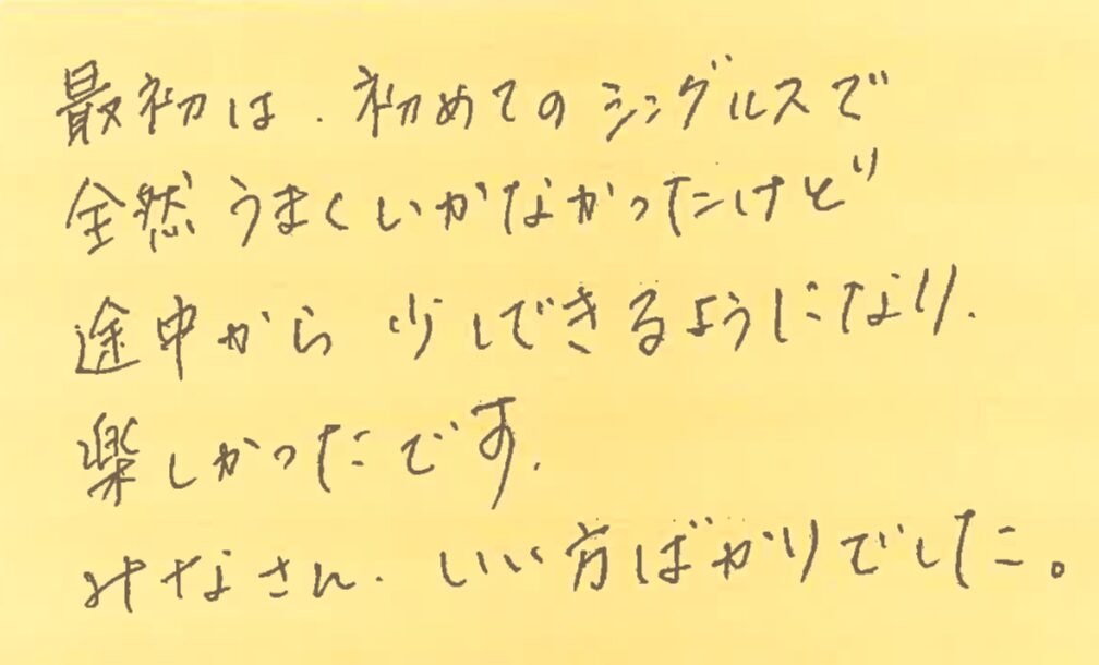 そんな中、ダブルスが1ペアだけでの参戦だったので、シングルスの皆さんで組ませていただいて、相手をさせていただいたのですが、