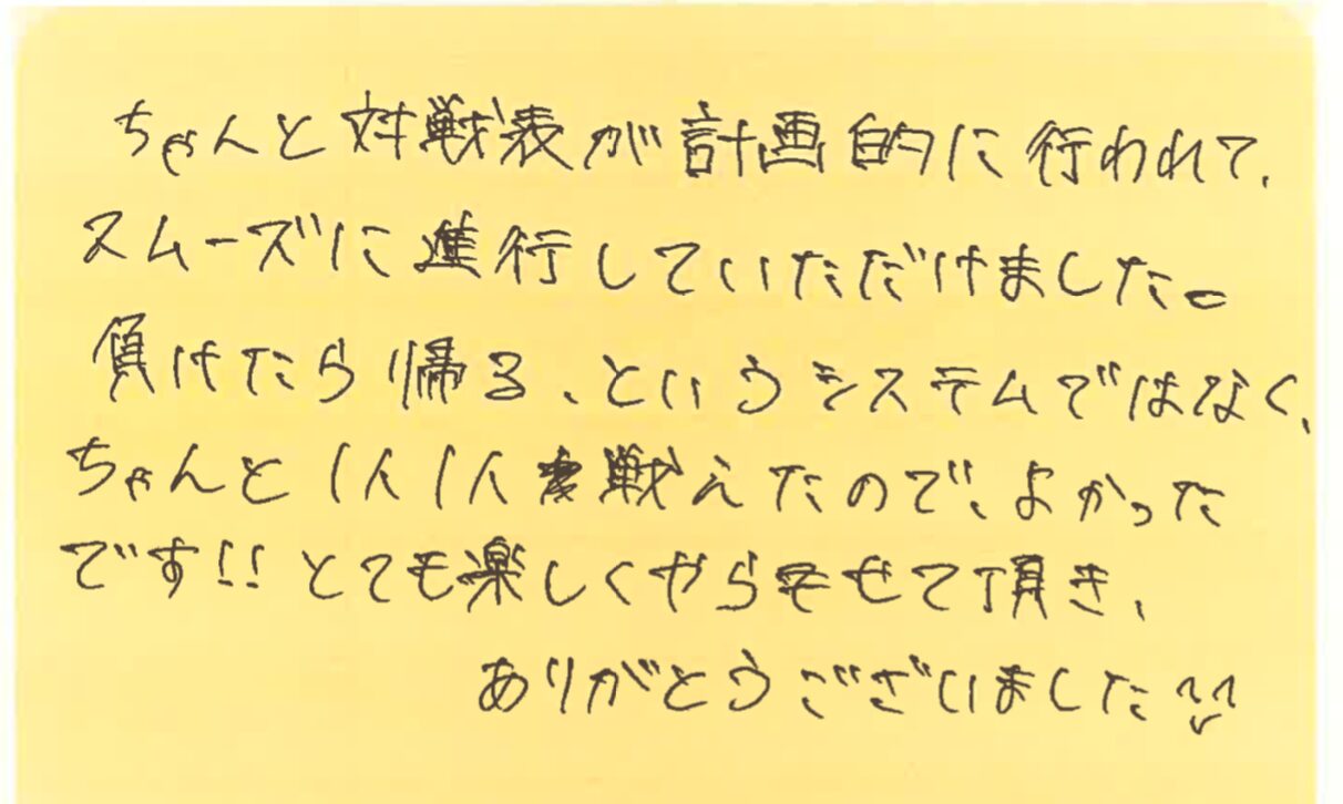 さて、今回は6月7日から6月9日にかけて開催した大会の写真と優勝された方のお名前、それと、その日に初めて参加してくださった方よりいただいた感想をご紹介させていただきます!