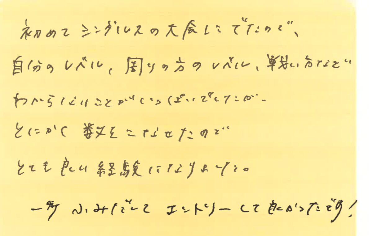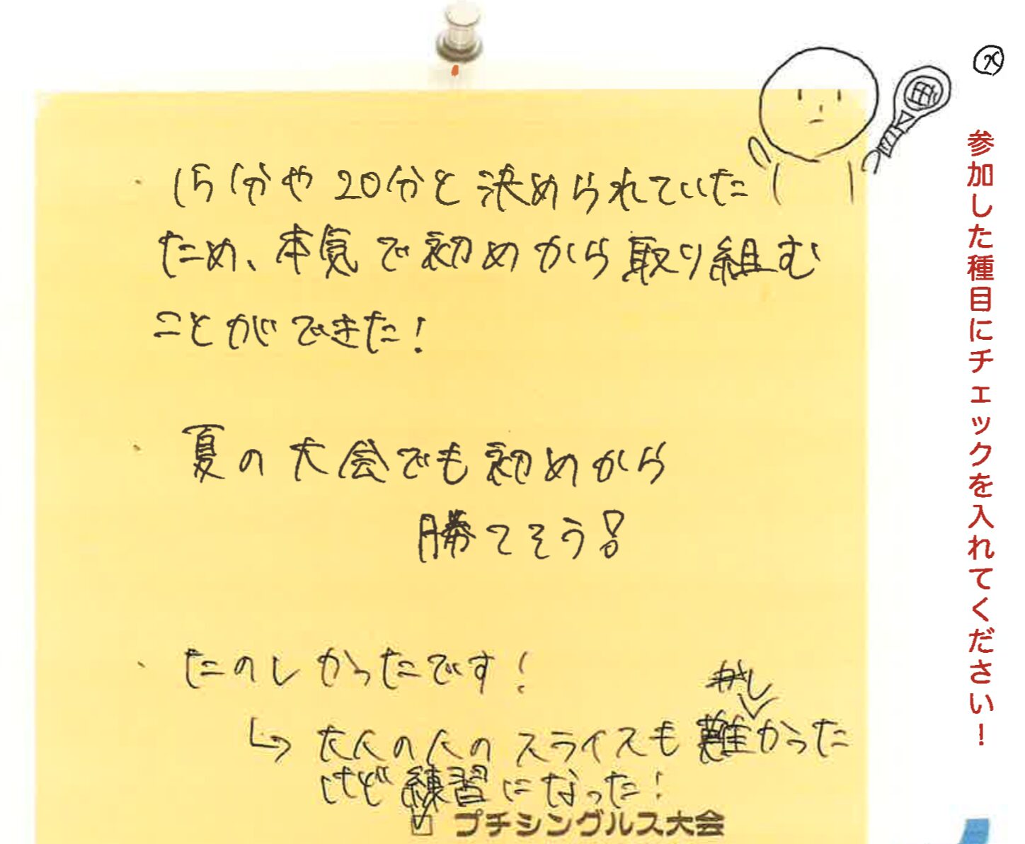 6月7日から6月9日にかけてのプチシングルス大会・プチダブルス大会の写真と優勝者のご紹介、そして感想です!