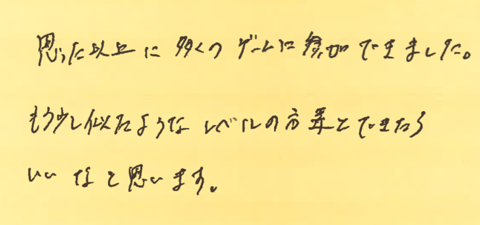 少人数ながら、しっかりと試合経験を積みながら、お楽しみいただけたことと思います!