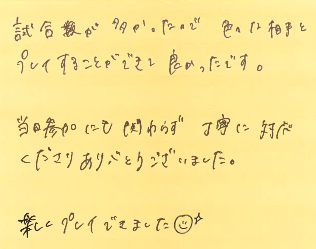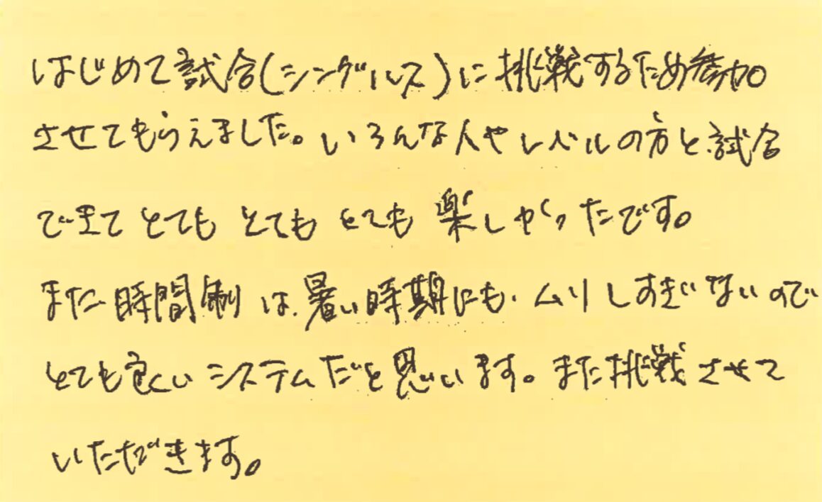 また、皆さんとコートでお会いできる日を楽しみにしております!!