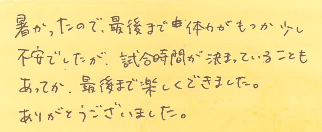 コートがうまく確保できなかったため、変則的な形での開催となったのですが、皆さん、しっかりとご対応くださったようで、最後までお楽しみいただけたことと思います!