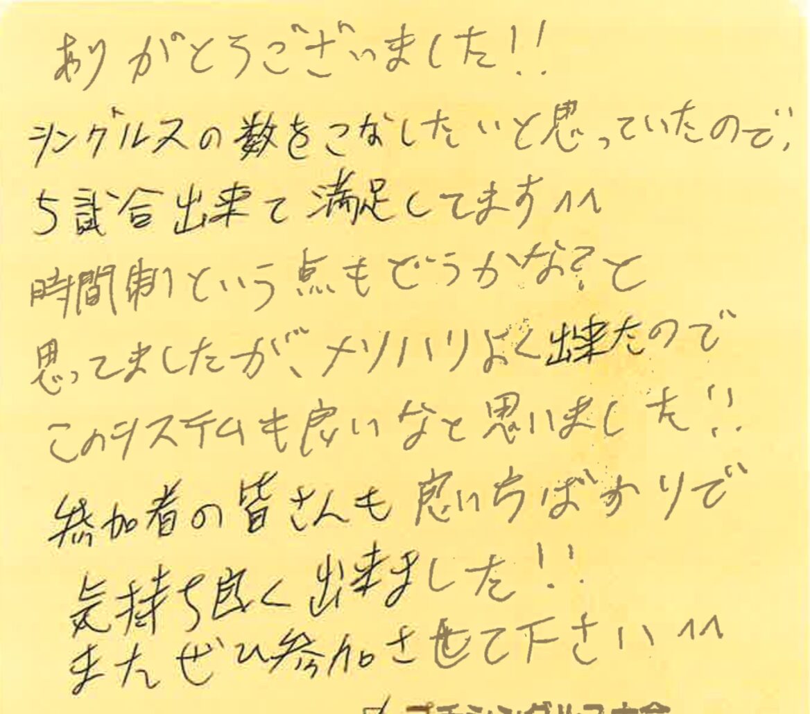プチシングルス大会の杉下です!