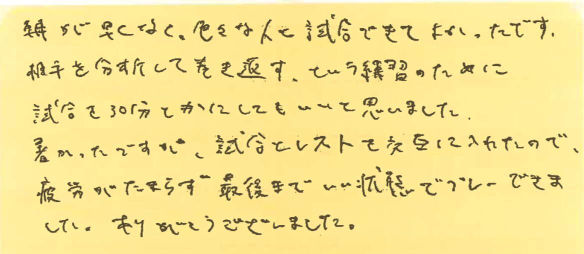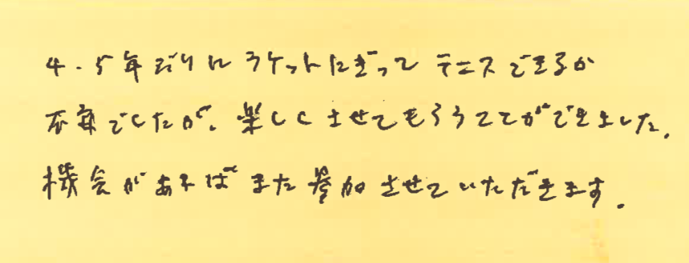 また、皆さんとコートでお会いできる日を楽しみにしております!!