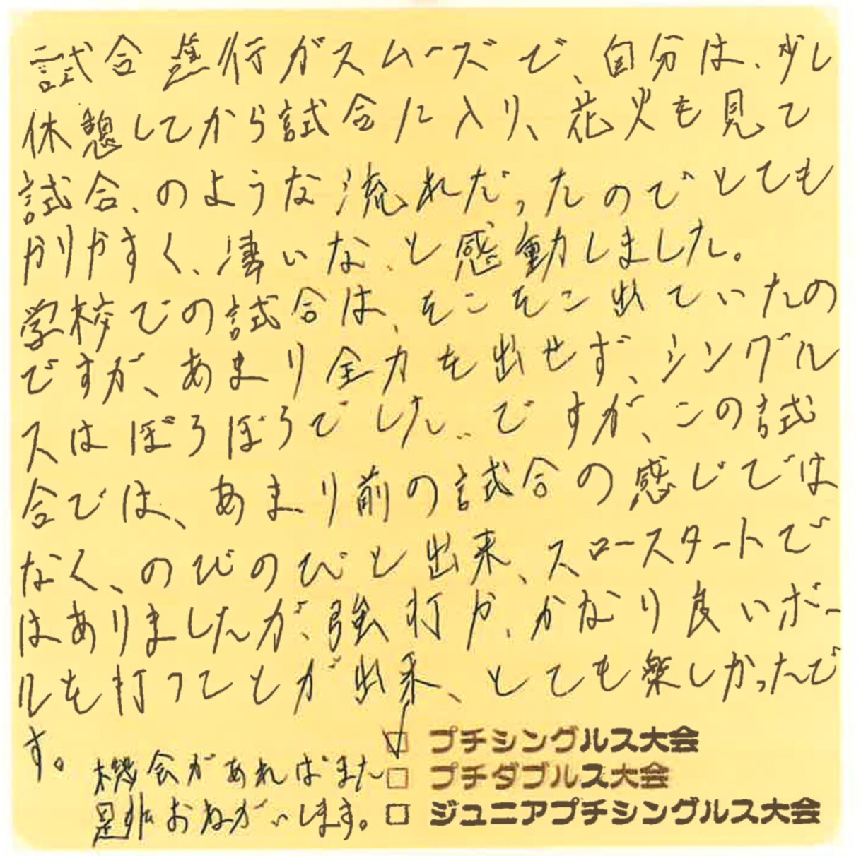 8月23日から24日にかけてのプチシングルス大会・プチダブルス大会の写真と優勝者のご紹介、そして感想です!