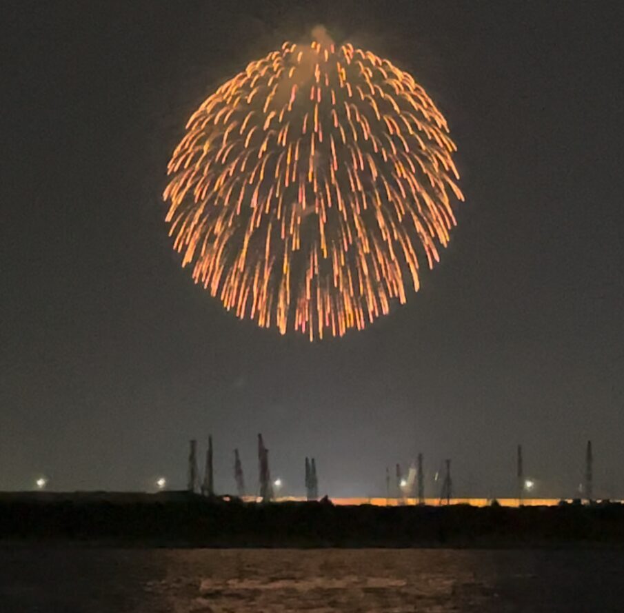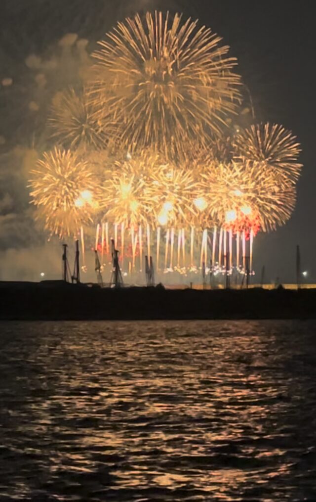 この日は、Japan Firework Expo という特別なタイトルのついた花火となっており、いつもよりも花火を打ち上げる時間が長い!