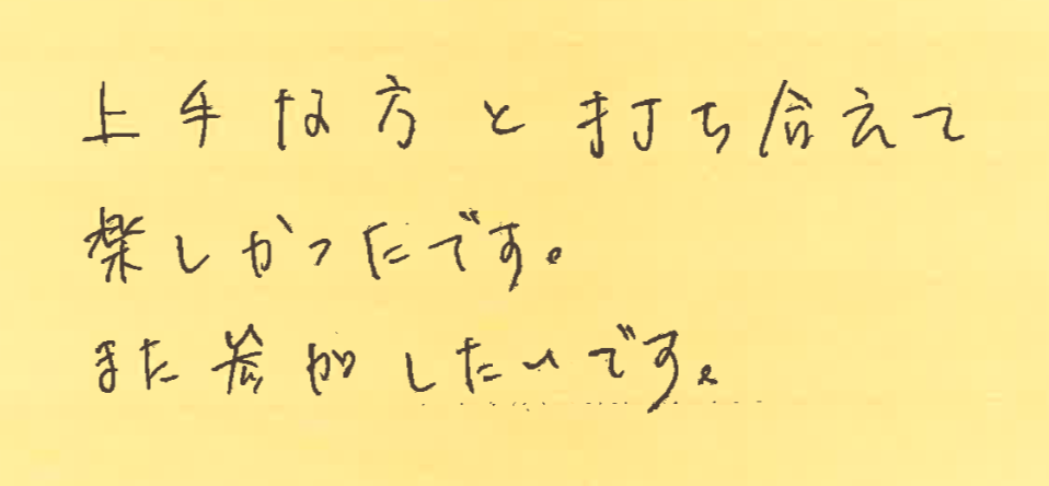 さて、今回は8月23日から24日に開催した大会の写真と優勝された方のお名前、それと、その日に初めて参加してくださった方よりいただいた感想をご紹介させていただきます!