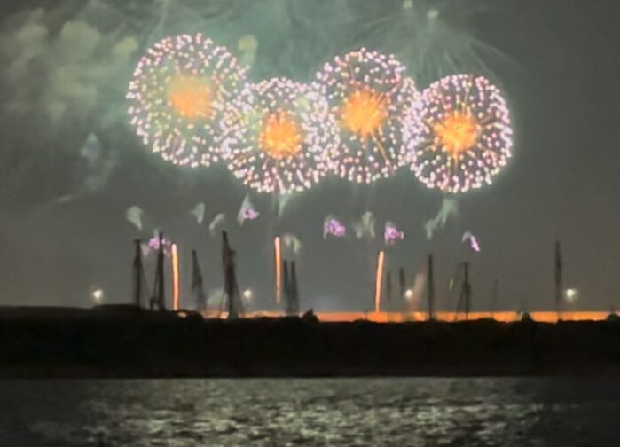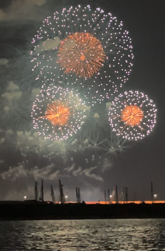 この日は、Japan Firework Expo という特別なタイトルのついた花火となっており、いつもよりも花火を打ち上げる時間が長い!