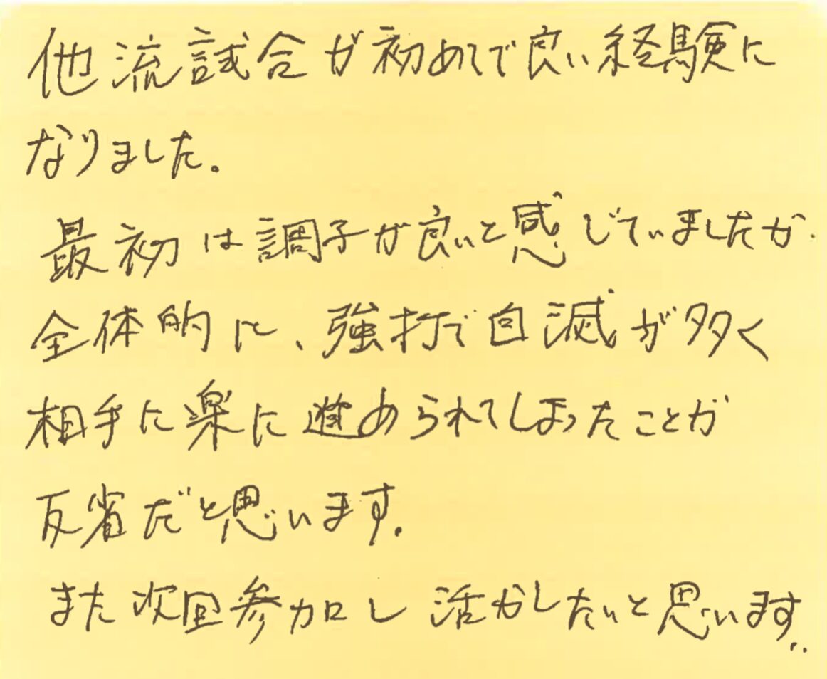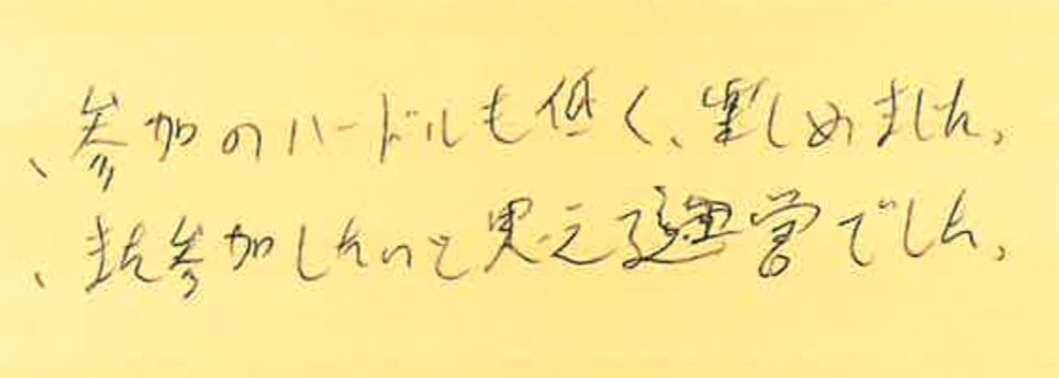 初めて参加された方が、大会を通して何を感じたのか?特に初めて参加しようとしている方の参考にしていただけたらと思います。