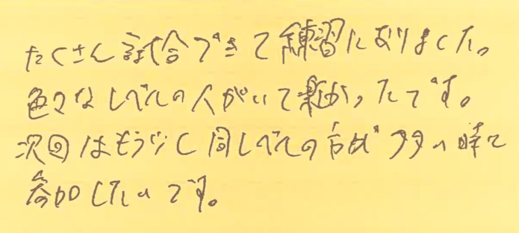 「知らない人とたくさん打てるのが良かった」とのこと、とても嬉しいです!