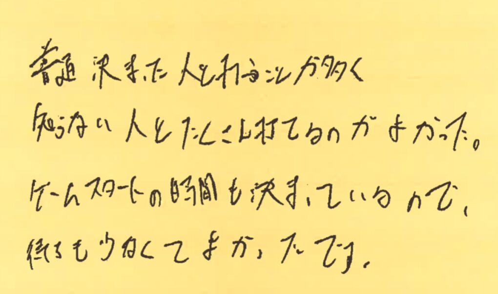 また、「ゲームスタートの時間も決まっているので、待ちも少なくてよかった」とのこと、そういう部分まで気に入ってくださり嬉しいです!