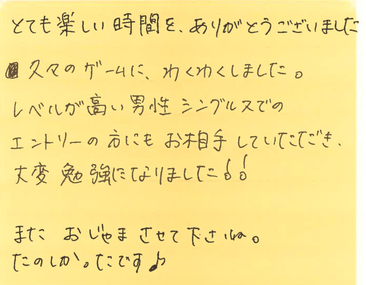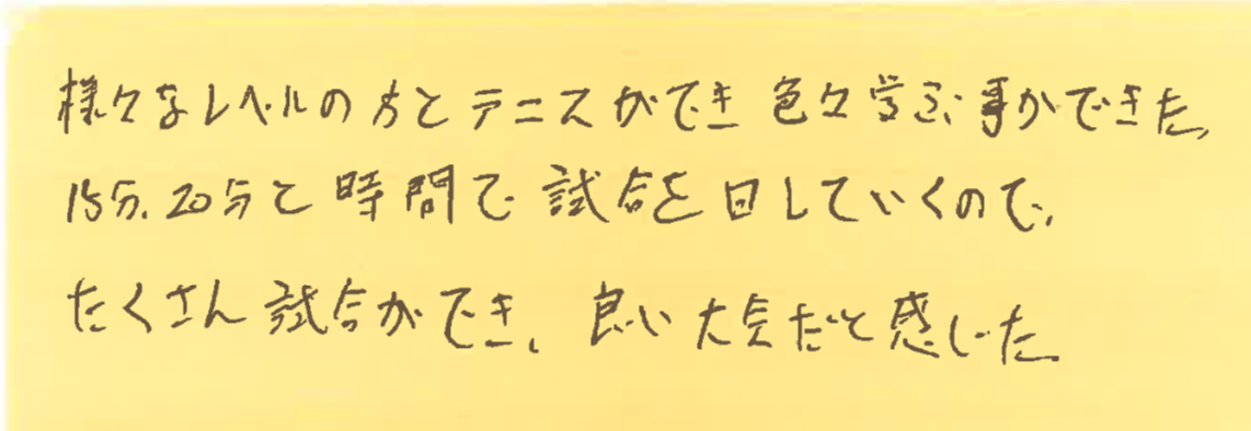「いろんな方とシングルスができて楽しかった!」とのこと、嬉しいです!