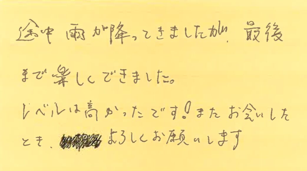 途中、雨になりましたが、最後までお楽しみいただけたとのこと、良かったです!