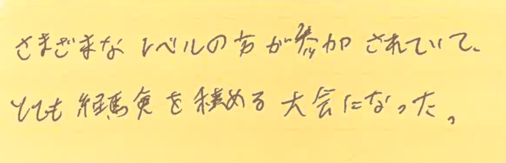 最後の一言、「良い大会だと感じた」とのこと、とても嬉しいです!