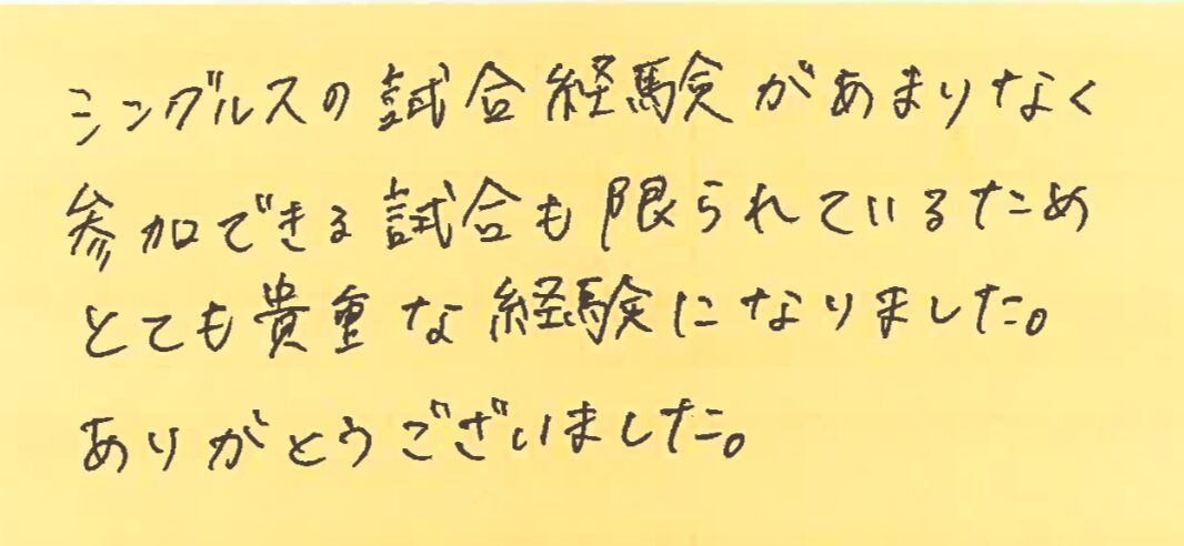 また、皆さんとコートでお会いできる日を楽しみにしております!!