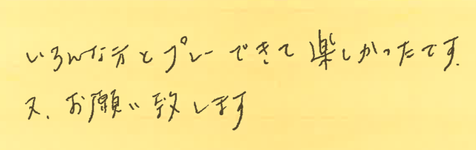 いろんな方とプレーできて楽しかったとのこと、嬉しいです!