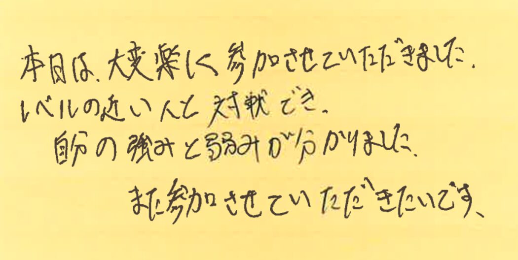 やはり、こういう場所に来て、普段とは違う人と対戦することはとても大事なんですよね!