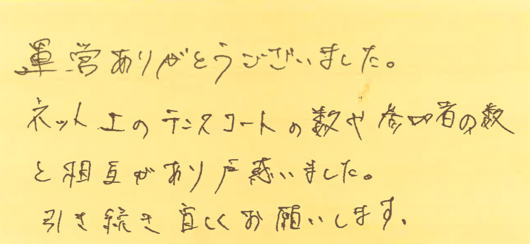 また、皆さんとコートでお会いできる日を楽しみにしております!!