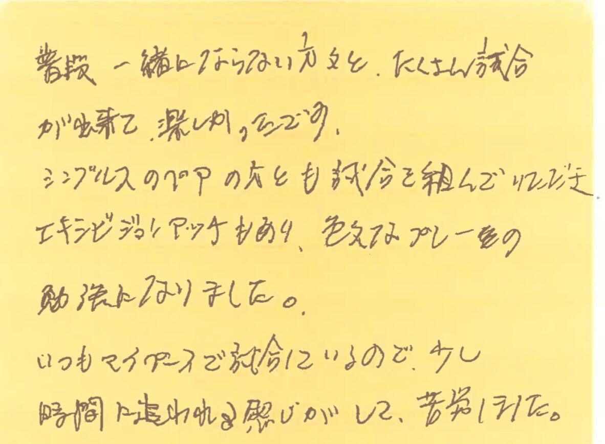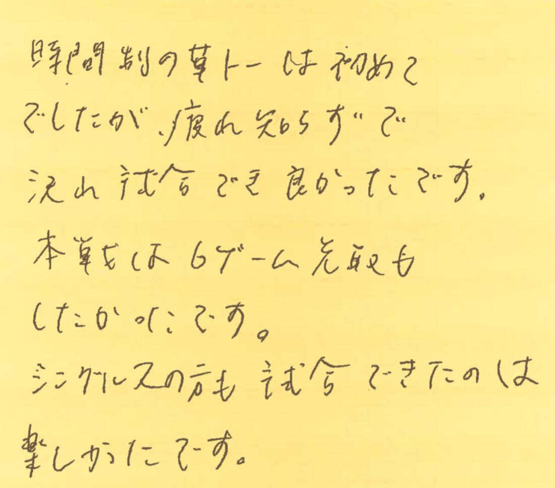 「普段、一緒にならない方とたくさん試合ができて楽しかった」・・・とのこと、嬉しいです!