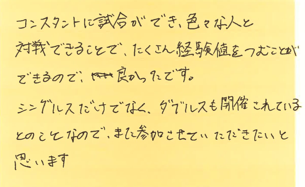 また、皆さんとコートでお会いできる日を楽しみにしております!!