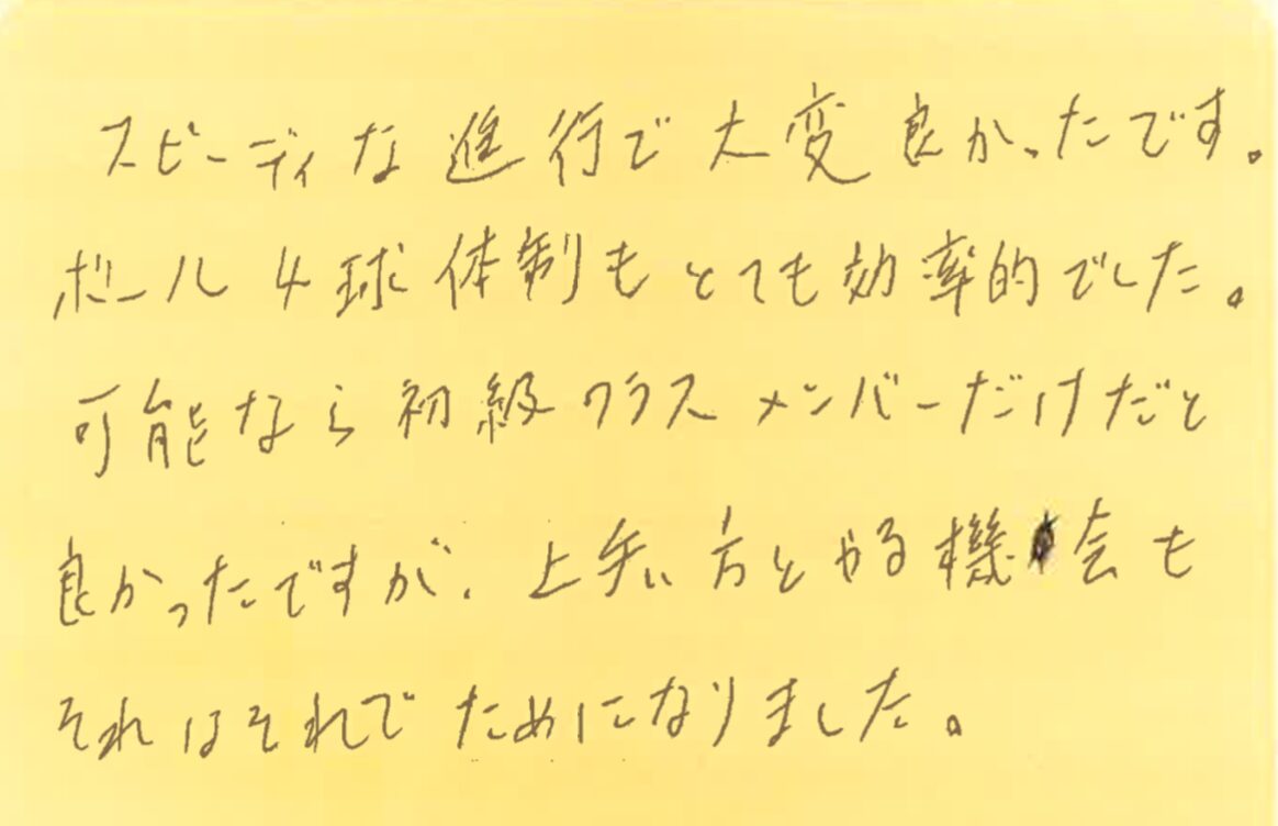 10月5、12、11月2、9日の調布プチシングルス大会に初めて参加してくださった方の感想です!