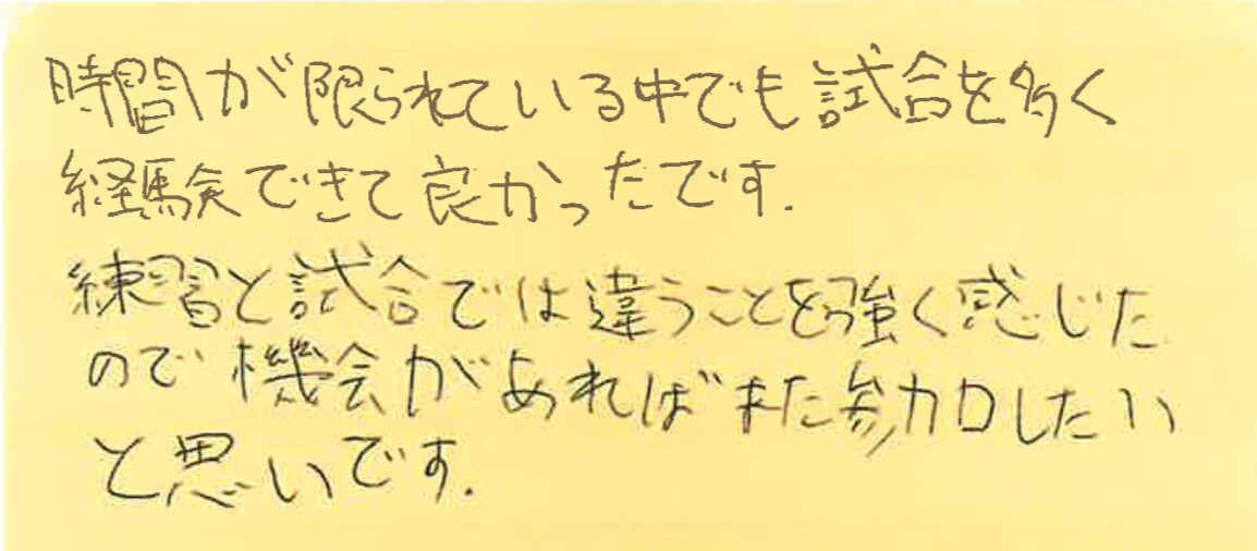 初めて参加された方が、大会を通して何を感じたのか?特に初めて参加しようとしている方の参考にしていただけたらと思います。