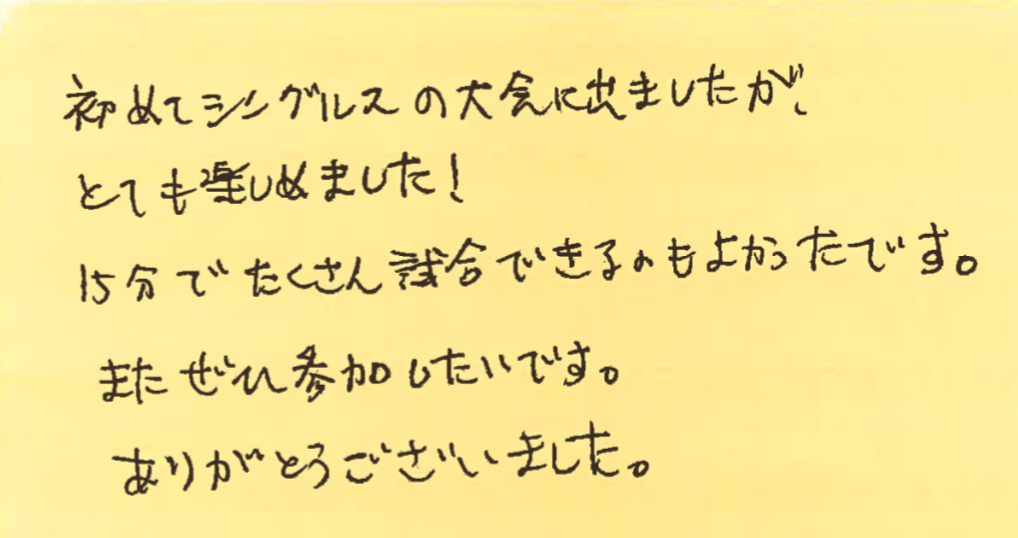 11月1、8、15日の横浜プチシングルス大会に初めて参加してくださった方の感想です!