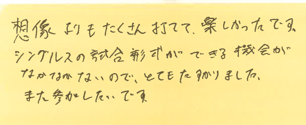 今回は、11月1、8、15日の横浜プチシングルス大会に初めて参加された方の感想をシェアさせていただきます!