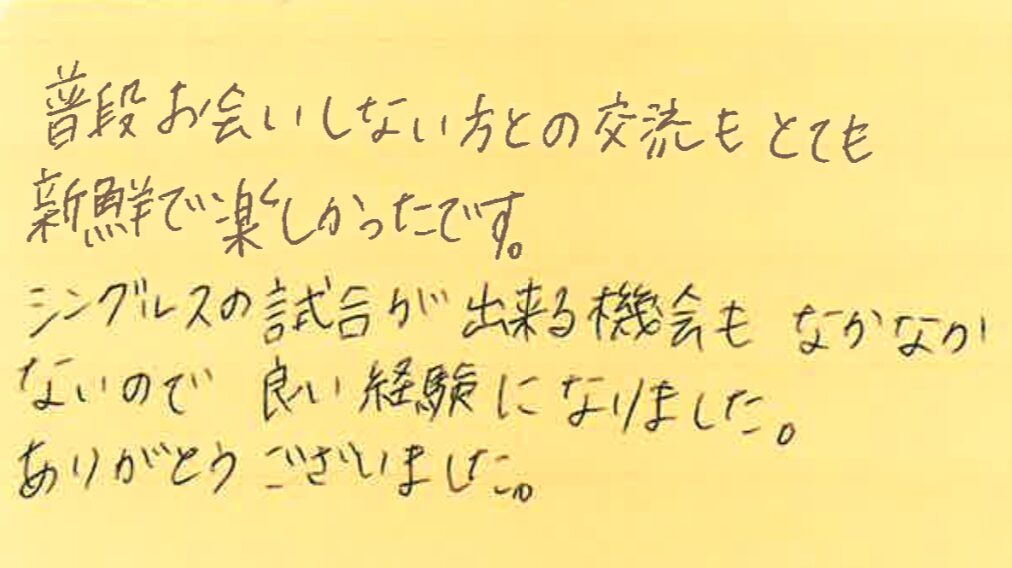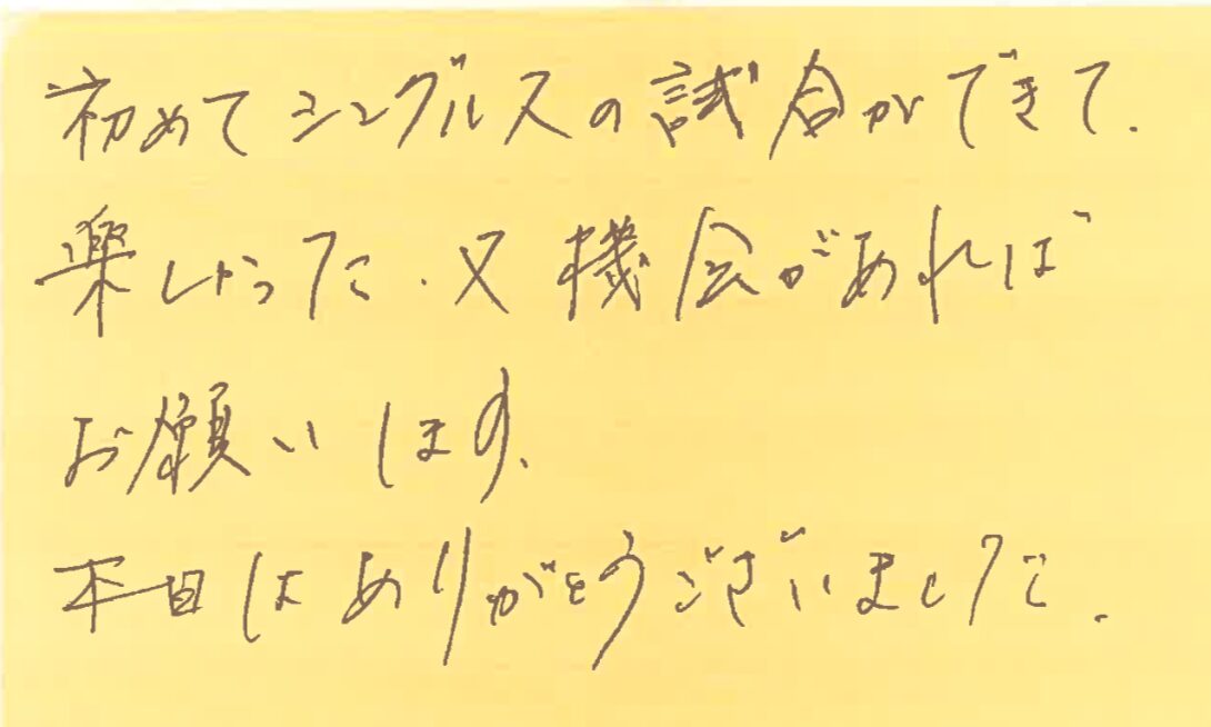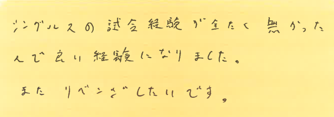 今回は、11月25日の久留米プチシングルス大会に初めて参加された方の感想をシェアさせていただきます!