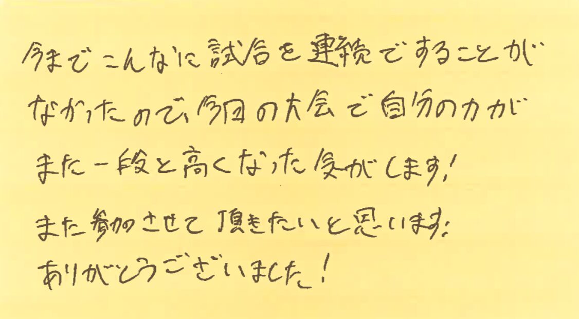 ビシバシ打つ方が多い大会だったので、見ている方も楽しませていただきました!